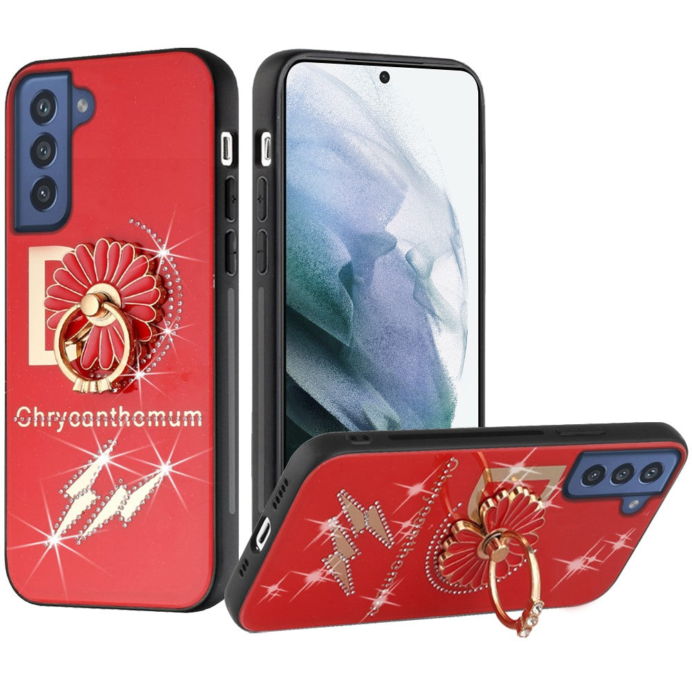 Slim Luxury Bling Rhinestone Glitter Crystal Diamonds Love Floral Design TPU Case With Ring Stand Hybrid Shockproof Phone Case