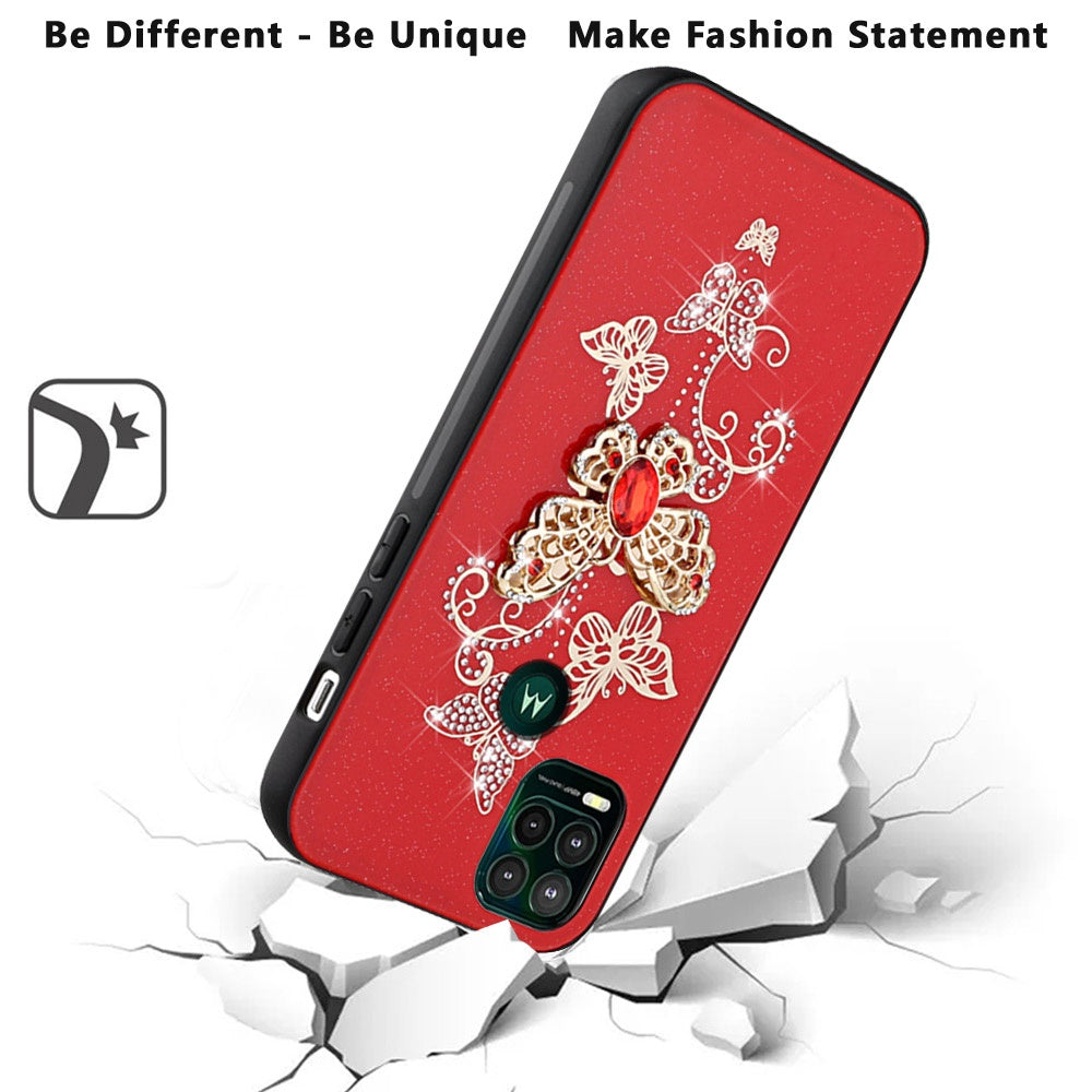 Red Garden Butterflies Slim Luxury Bling Rhinestone Glitter Crystal Diamonds Love Floral Design TPU Case With Ring Stand Hybrid Shockproof Phone Case
