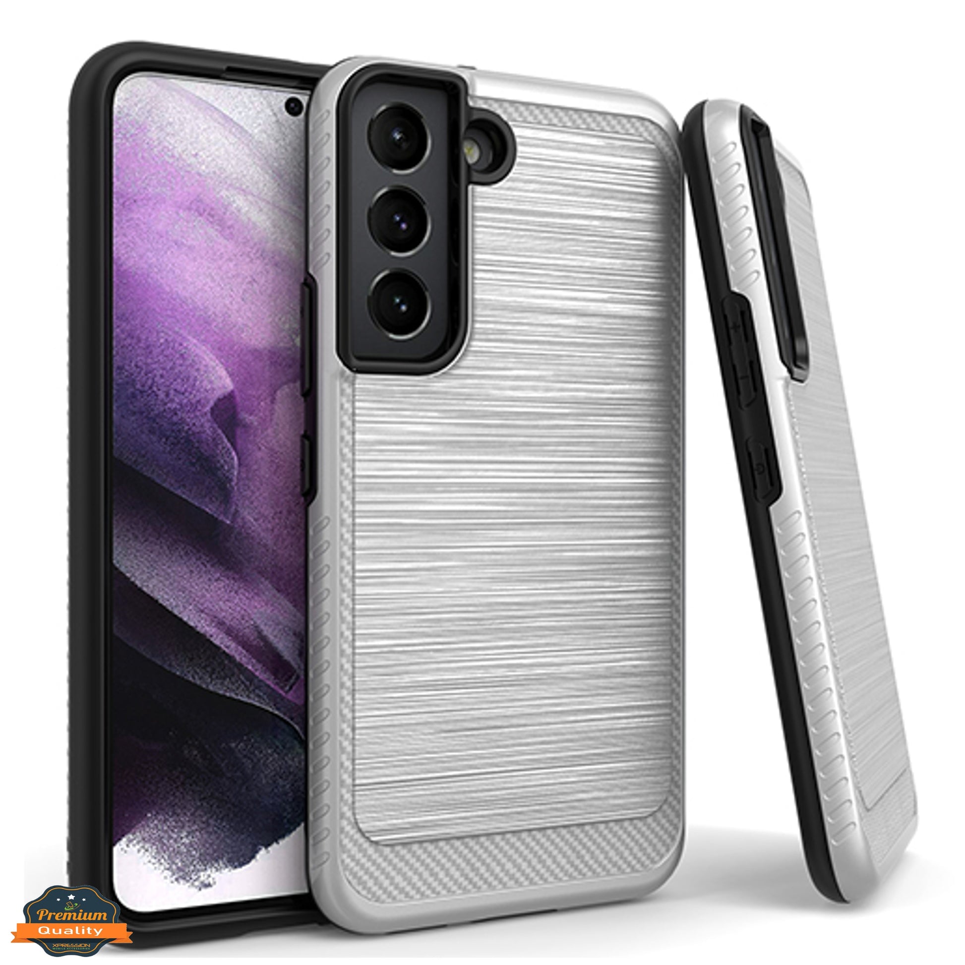 Hybrid Armor Brushed Textured Carbon Fiber Metallic Brush Finish Dual Layers Hybrid Amor Defender [TPU + PC Material] [Brushed Metal Texture] Hard Shell Back Protector Cases