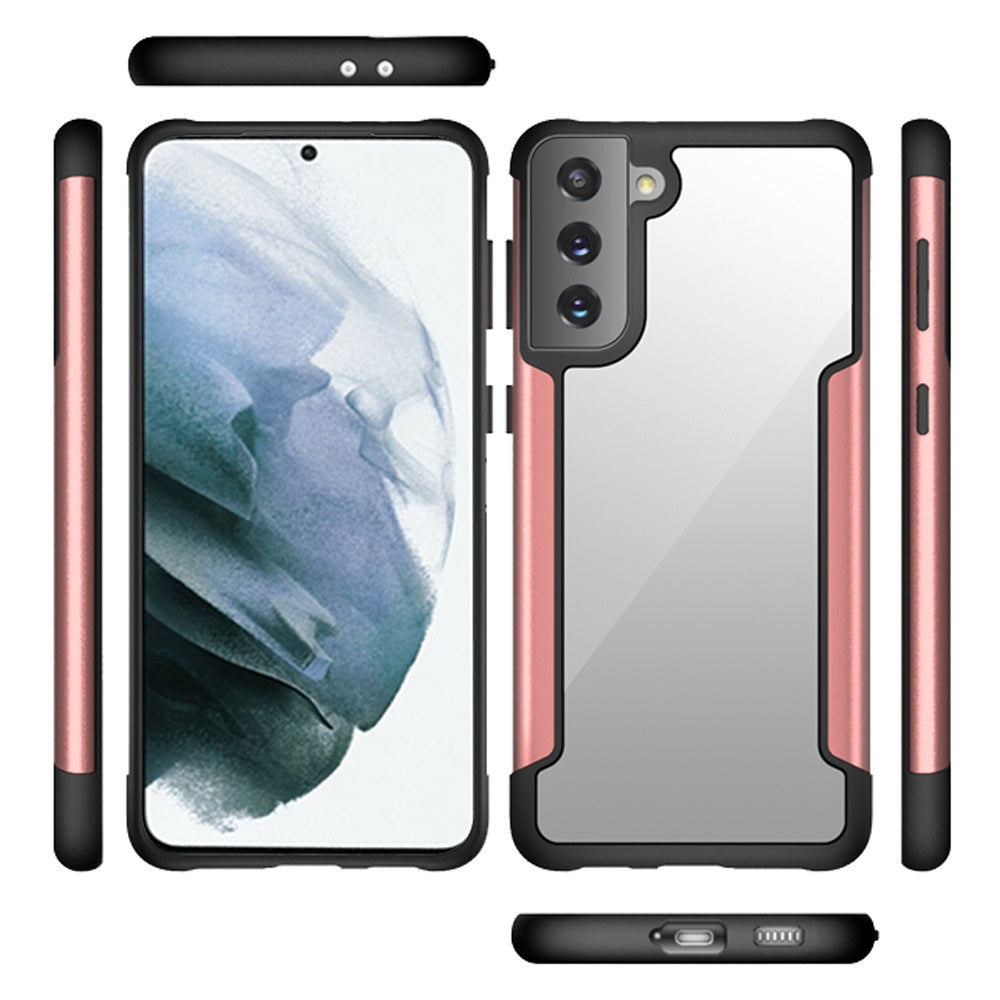 For Samsung Galaxy S22 Ultra Hybrid Aluminum Alloy Metal Clear Transparent Back PC TPU Bumper Frame Armor Shockproof Rose Gold Phone Case Cover