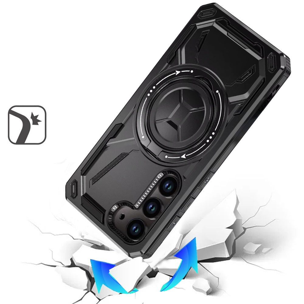 For Samsung Galaxy S23 Hybrid Magnetic Ring and 360° Rotational Kickstand with MagSafe Compatible, Military Grade Drop Protection Case Cover Black