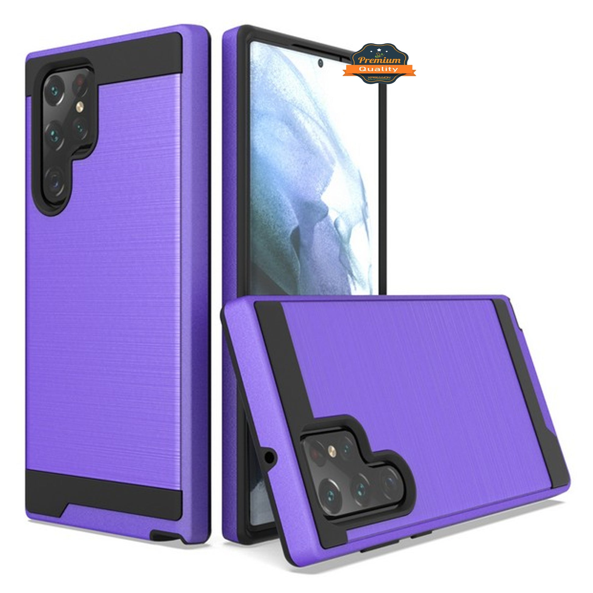 For Samsung Galaxy S23 /Plus /Ultra Slim Fit Rugged TPU + Hard PC Brushed Metal Texture Hybrid Dual Layer Armor Shockproof Phone Case Cover