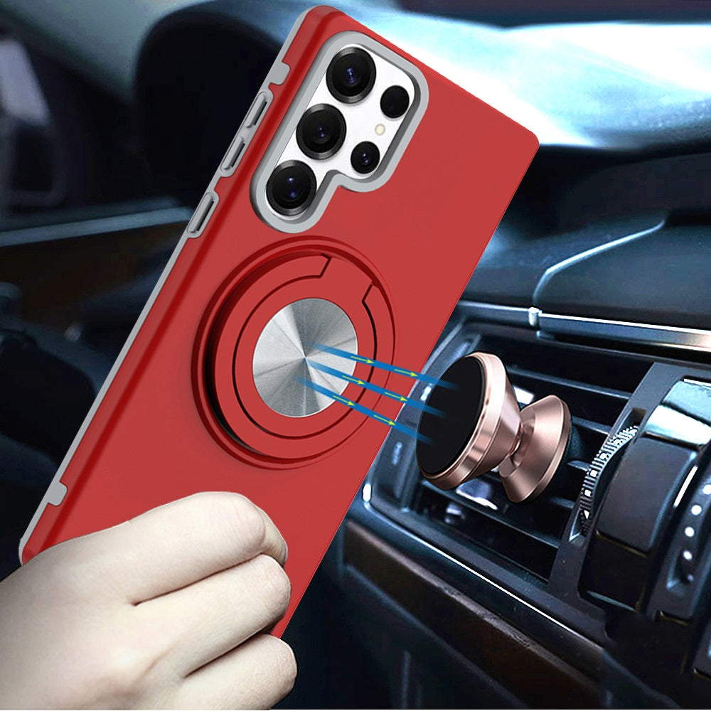 For Samsung Galaxy S23 Ultra Metal Matte Hybrid with Invisible Rotational Ring Stand, Car Mount Friendly, Military Grade Slim Fit Sturdy Case Cover