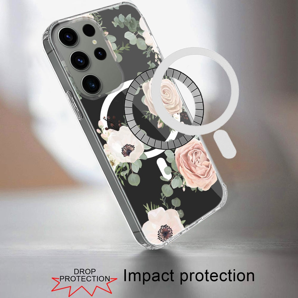 For Samsung Galaxy S24 FE /Fan Edition Hybrid Flower Design Stylish Fashion Thick Hard MagSafe Compatible Shockproof Case Cover
