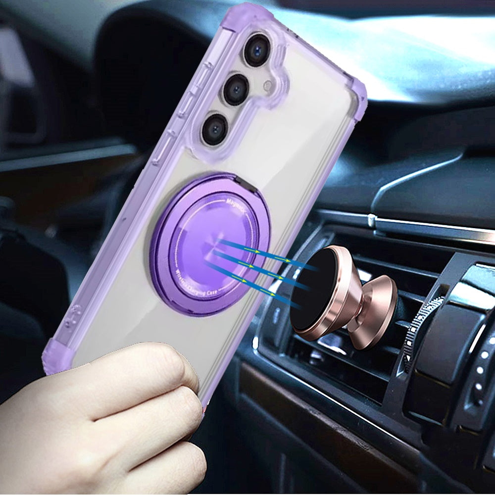 For Samsung Galaxy S25 /S24 Shield Magnetic Case [Compatible with MagSafe], 360° Rotatable Invisible Ring Stand, Transparent Back Case Cover