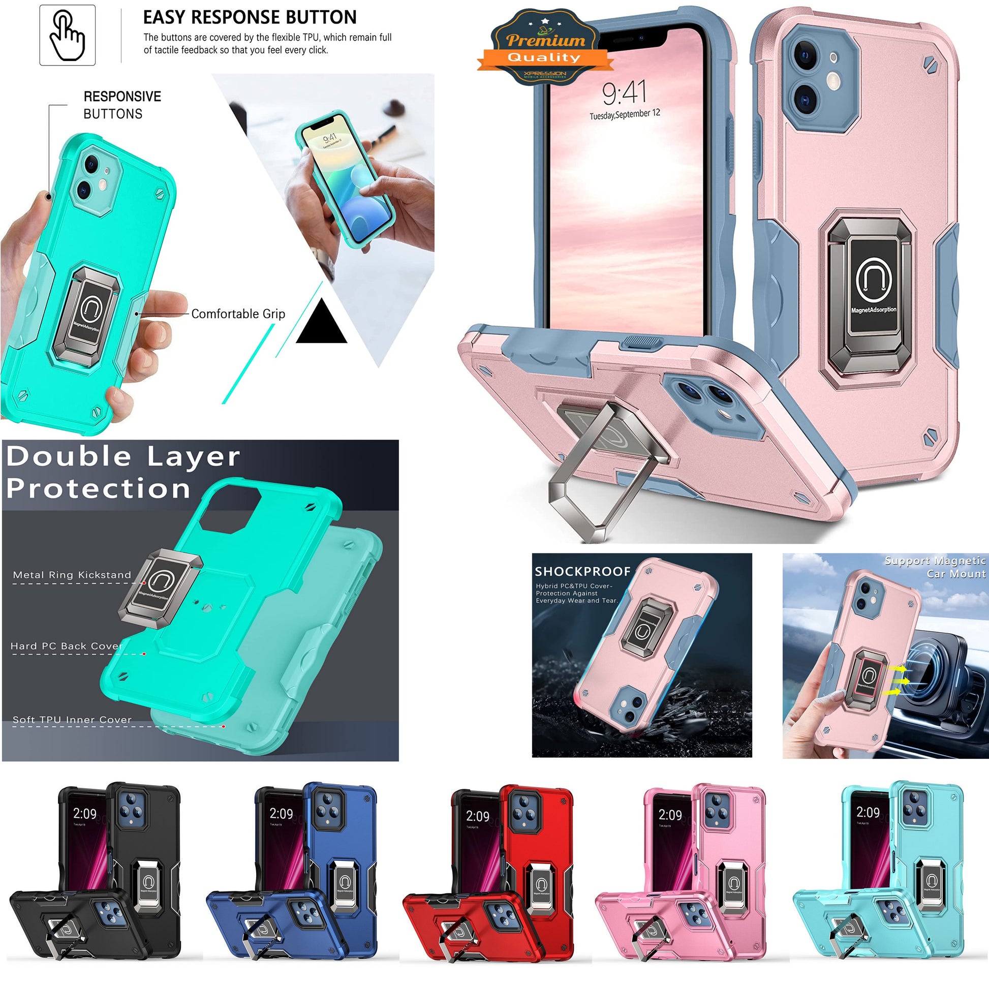 • Material: High qualit full body back cover, armor heavy duty shockproof.Elasticity TPU frame,extra reinforcement from hard PC material provide aesthetic and metal loop kickstand.