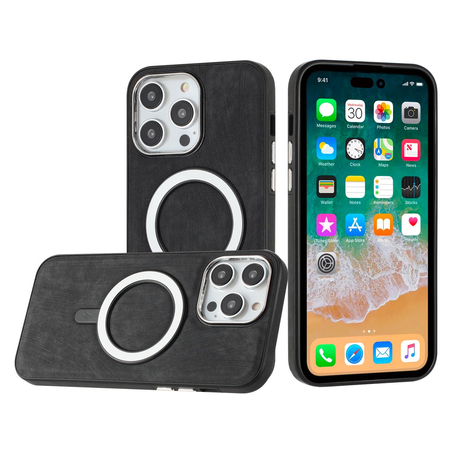 • Ultra Slim Fashion PU Vegan Chrome Edged Hybrid Armor Defender Magnetic Case Compatible with MagSafe Accessories TPU Rubber + Hard PC Drop Proof Rugged Protective Shockproof Phone Cover. Precisely Cutouts: Perfectly align with all buttons, controls, and ports allowing easy access to camera and all ports without having to remove the case. Covered buttons are quick responding.