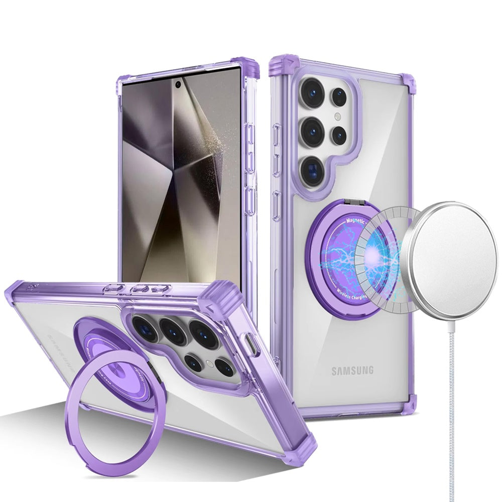 For Samsung Galaxy S25 Ultra Shield Magnetic Case [Compatible with MagSafe], 360° Rotatable Invisible Ring Stand, Transparent Back Case Cover