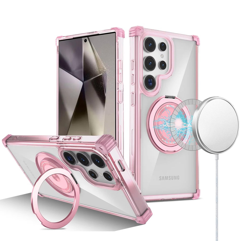 Phone Case Cover For Galaxy S25 Ultra Shockproof Transparent Hybrid Case with 360° Rotatable Ring Magnetic /Invisible Stand Compatible with Magsafe Military Standard Drop Protection Shockproof Transparent Phone Case Slim Cover