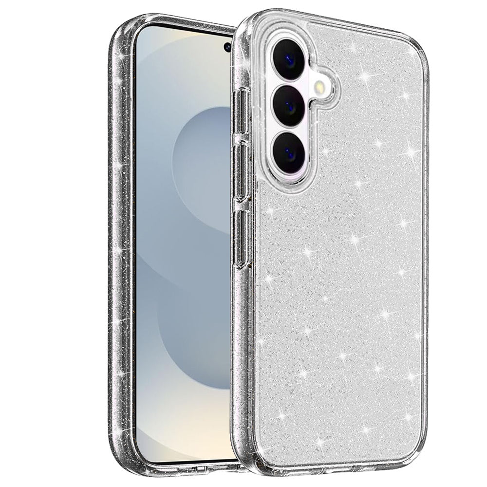 For Samsung Galaxy S26 Transparent Glitter Shiny Sparkle Bling TPU Rubber Hard Back Hybrid Frame Shockproof Case Cover