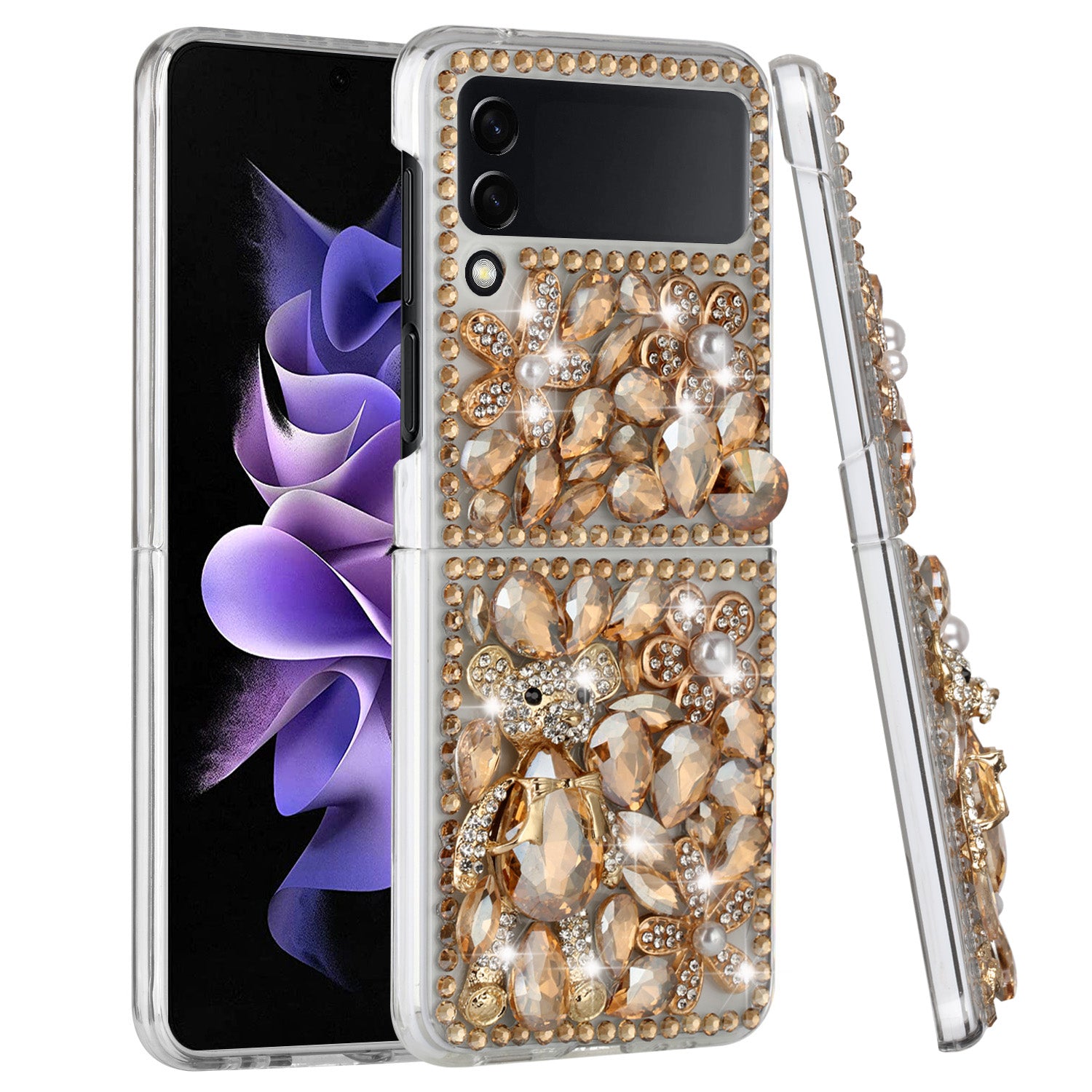 For Samsung Galaxy Z Flip 3 5G Bling Clear Crystal 3D Full Diamonds Luxury Sparkle Transparent Rhinestone Hybrid Phone Case Cover