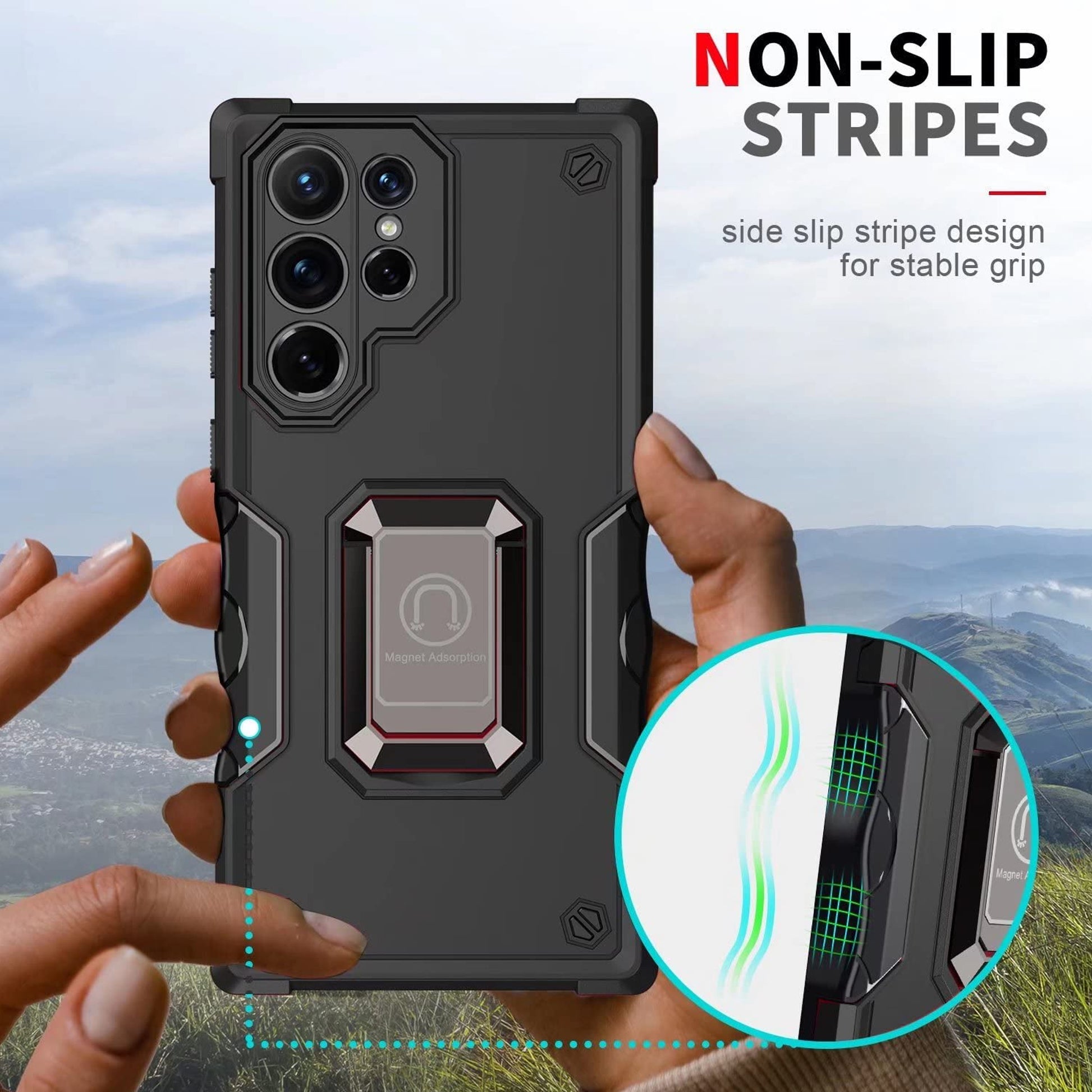 Heavy Duty Shockproof Built-in 360 Rotatable Ring Support Magnetic Car Mount Holder, Heavy Duty Full Protective Drop-Tested Armor Shiled Phone Case Cover.