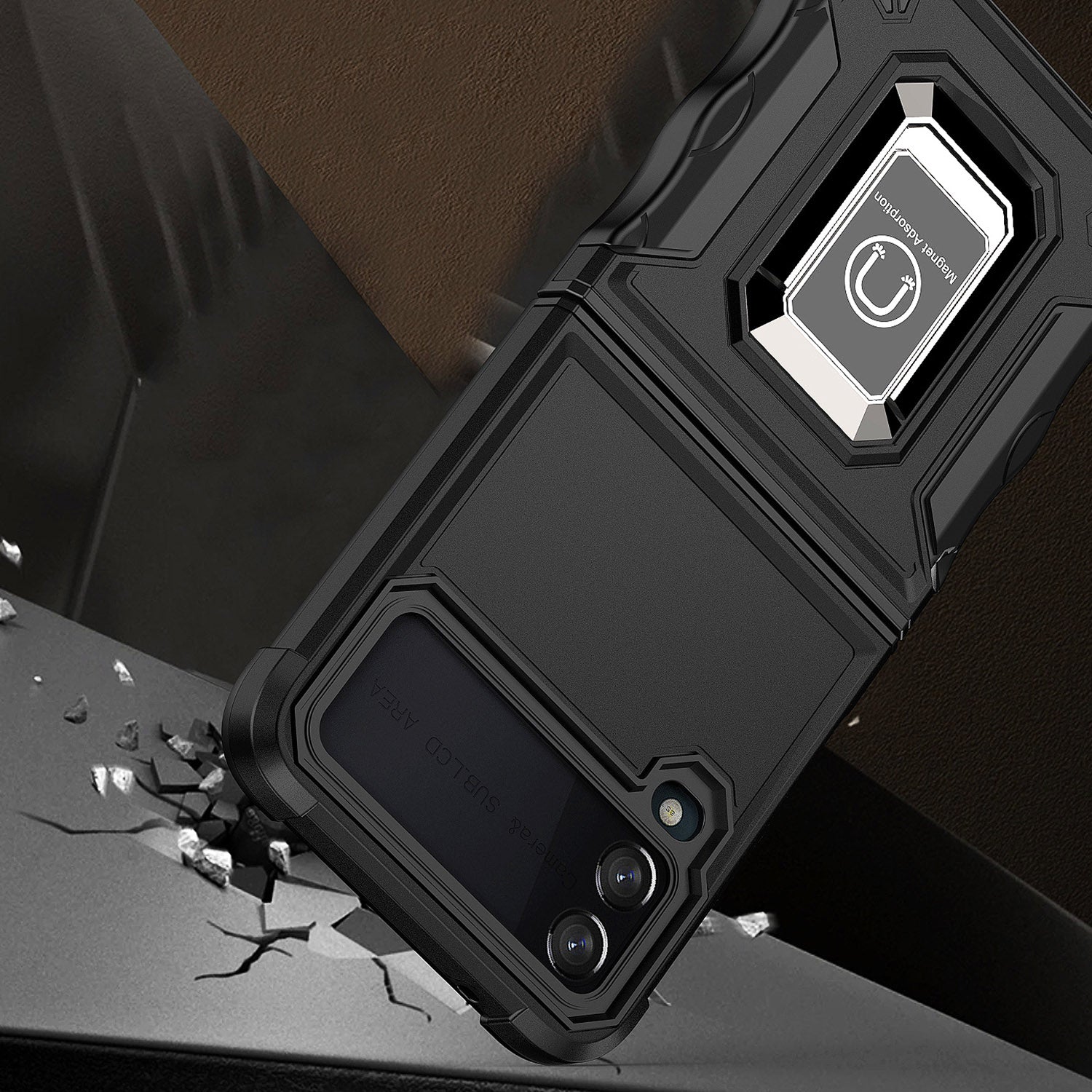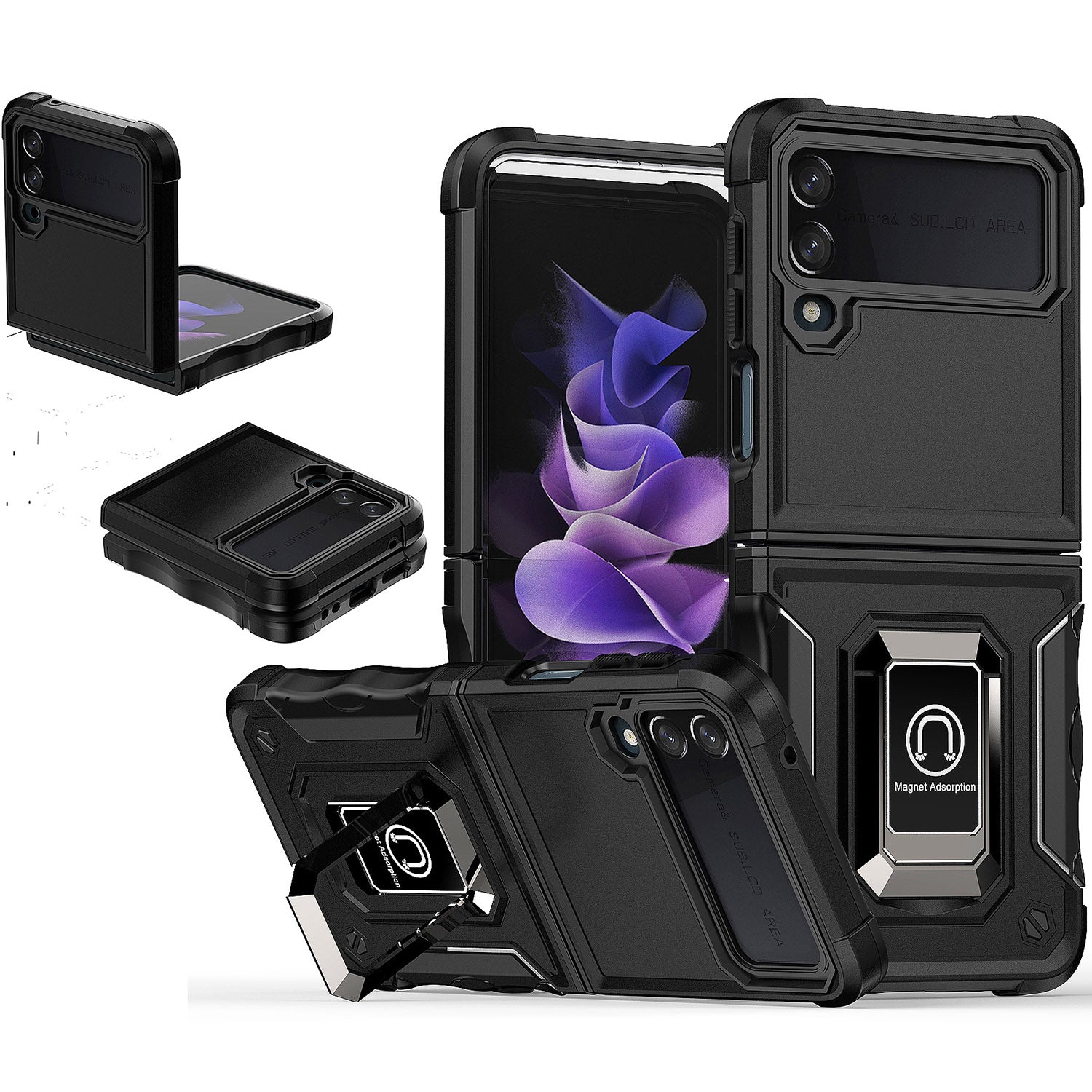 For Samsung Galaxy Z Flip 4 5G Hybrid Cases with Magnetic Ring Holder Kickstand Heavy Duty Rugged Silicone Shockproof Phone Case Cover