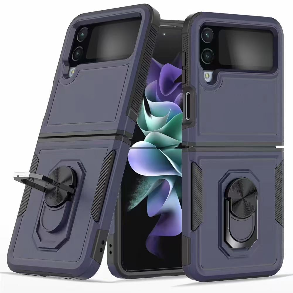 For Samsung Galaxy Z Flip 4 5G Hybrid Rugged Hard 3 Layer Protection Military Grade Heavy-Duty Armor with Ring Kickstand Phone Case Cover