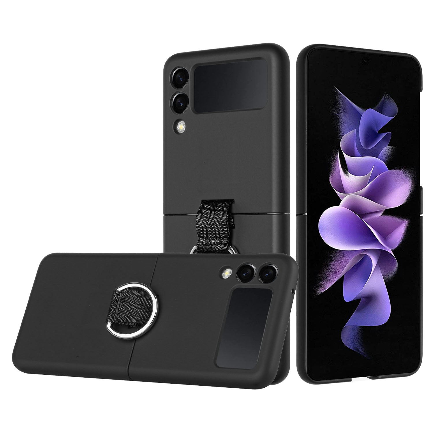 For Samsung Galaxy Z Flip 4 5G Slim Fit Hybrid Hard Rubber TPU Metal Ring Finger Hook Holder Strap Shockproof Protective Phone Case Cover