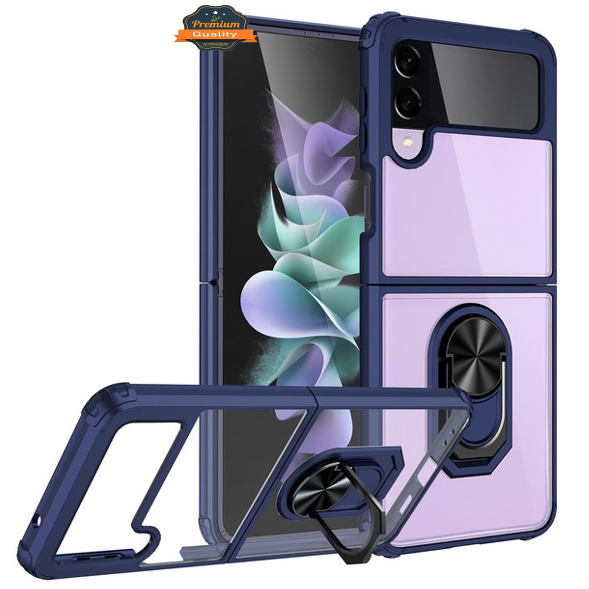 For Samsung Galaxy Z Flip 4 5G Transparent Back Hybrid Cases with Magnet Ring Stand Color Bumper Frame Slim Hard PC TPU Phone Case Cover