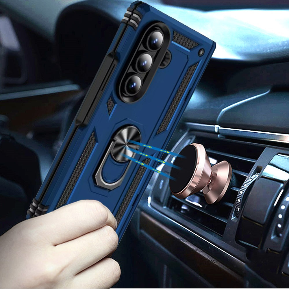 Blue Phone Case Cover For Galaxy Z Flip 7 FE This Magnetic Ring Kickstand Hybrid Case is designed specifically for your phone, offering both function and protection. The built-in magnetic ring doubles as a secure grip and kickstand for hands-free use, while the dual-layer hybrid construction absorbs shocks and resists everyday wear. Raised edges protect your screen and camera, and the slim, pocket-friendly profile ensures easy portability. With precise cutouts and magnetic mount compatibility, it's the perfect balance of convenience and durability.