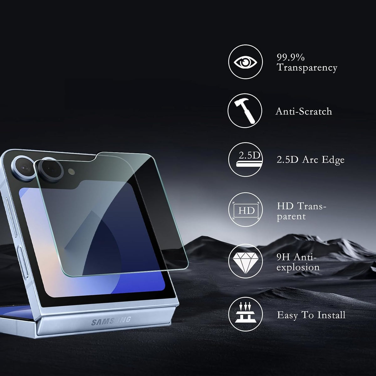 • Compatible for Samsung Galaxy Z Flip 7 FE, Privacy Tempered Glass: Keeps your screen content private; visible only to you while blocking side views, Premium Screen Protection: Safeguards your device against scratches; impacts; and everyday wear, High-Quality Tempered Glass: Maintains clarity and touch sensitivity while offering robust protection, Anti-Spy Design: Protects your confidential information in public spaces, Easy Installation: Bubble-free application with precise cutouts for a perfect fit, Fingerprint Resistant Coating: Reduces smudges and ensures a clean screen for better visibility