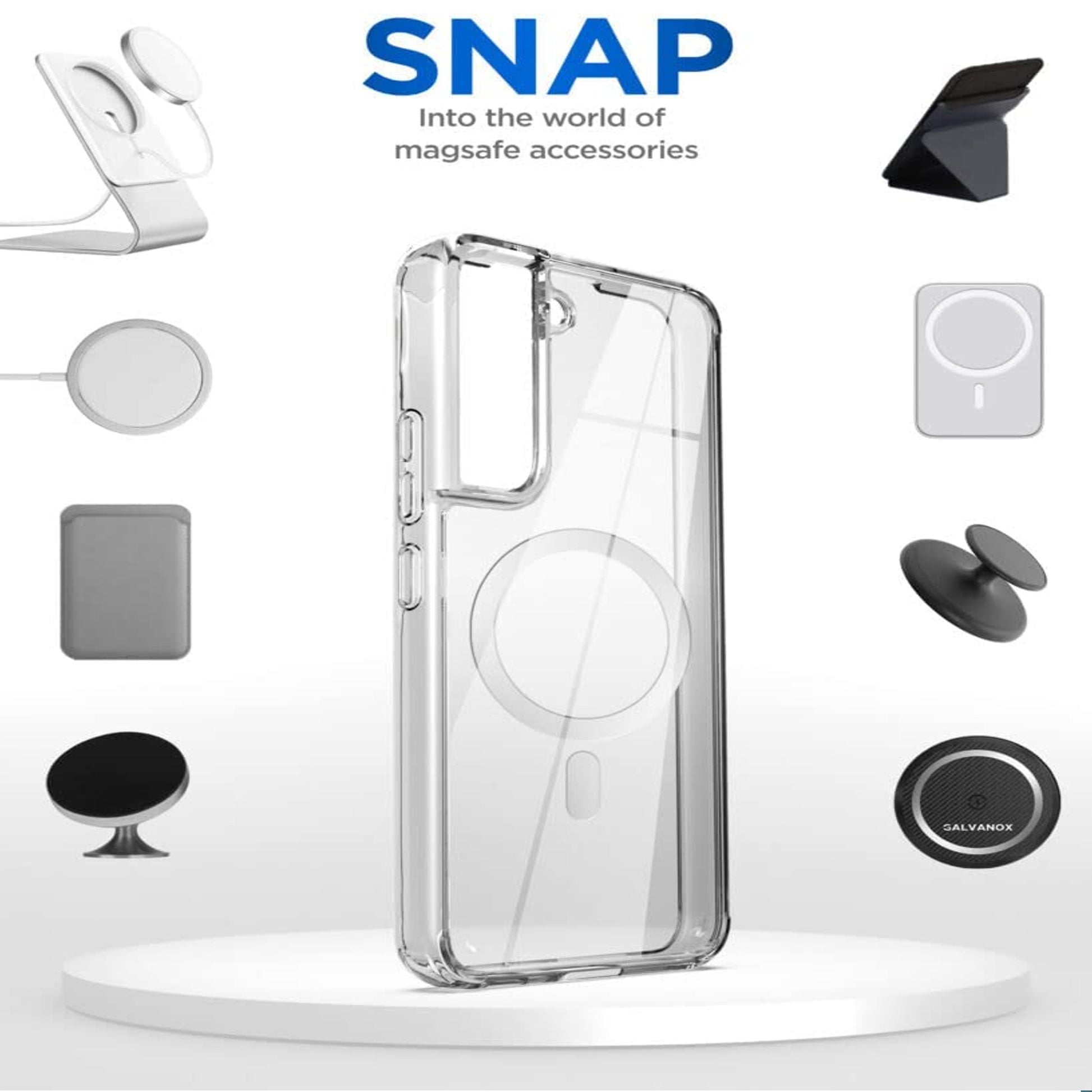 • Clear Back Magnetic Phone Case Compatible with Magsafe Charging & Accessories Military-Grade Protection, Hard PC Back + Rubber TPU Frame Protective Cover