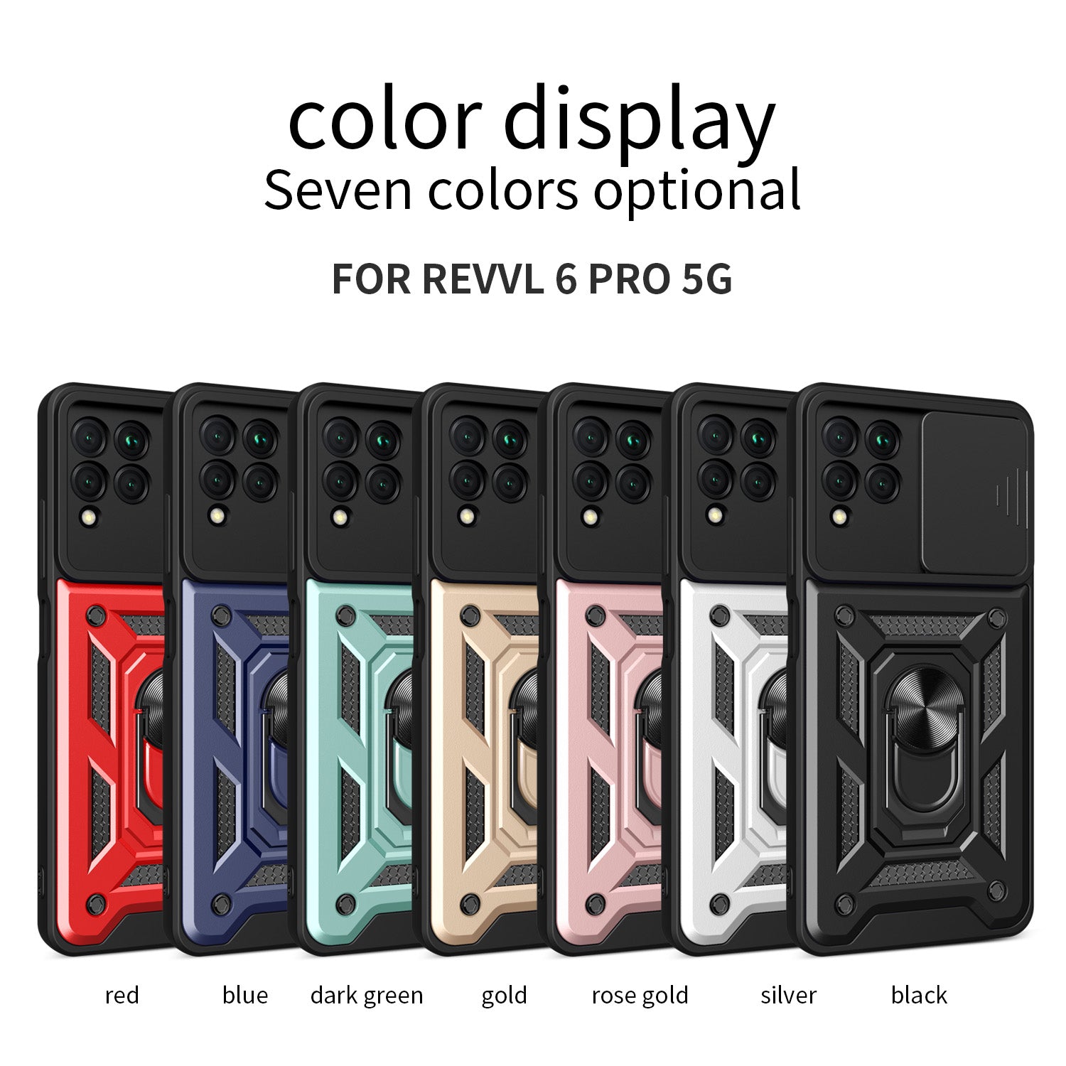 For T-Mobile Revvl 6 Pro 5G Hybrid Cases with Kickstand, Slide Camera Lens Protection + 360° Rotate Ring Stand Black Phone Case Cover