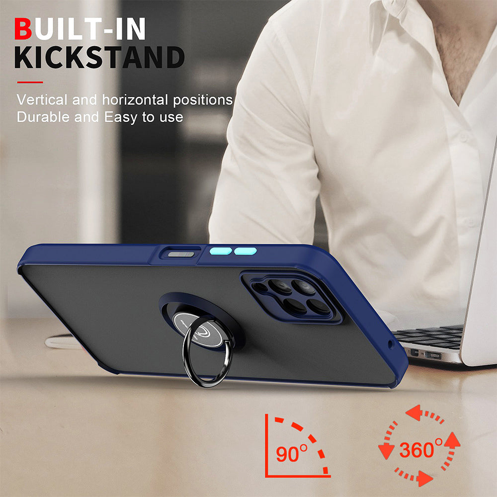Semi Transparent Matte Frosted Shockproof Protection Thin Hybrid Cover with 360° Magnetic Ring Holder Stand Kickstand Heavy Duty Hard PC + TPU Bumper Case Phone Cover