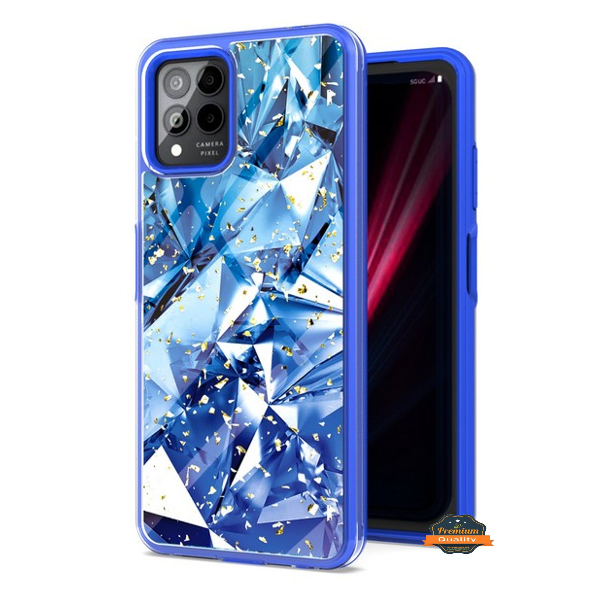 For T-Mobile Revvl 6 Pro 5G /Revvl 6 5G Pattern Design Bling Glitter Shockproof Hybrid Soft TPU Frame and Hard PC Back Phone Case Cover