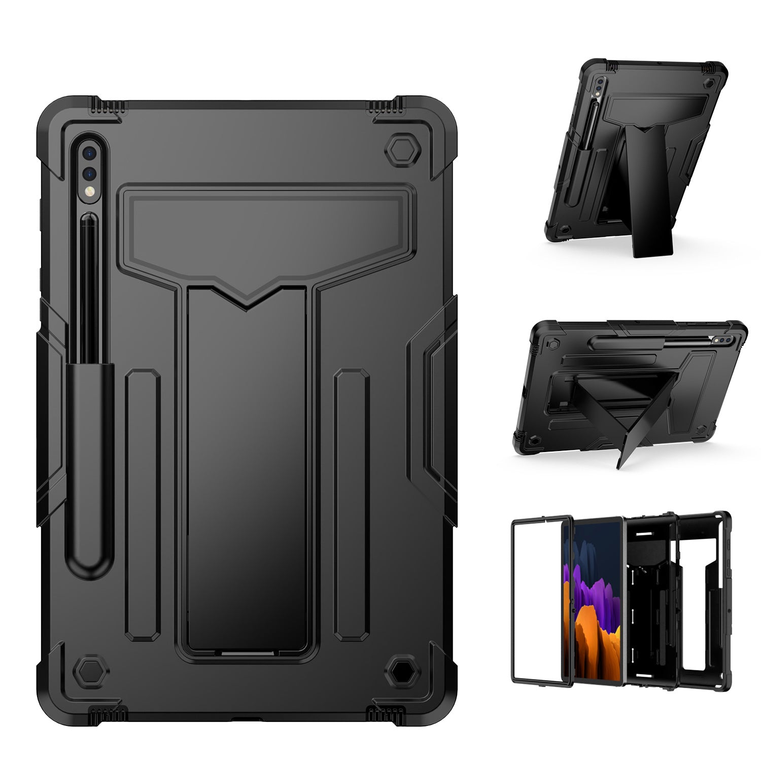 For Tough Hybrid with Vertical 3-in-1 Design, Built-in Kickstand, Shockproof Rugged Full Body with Grip Protection Black Tablet Case Cover