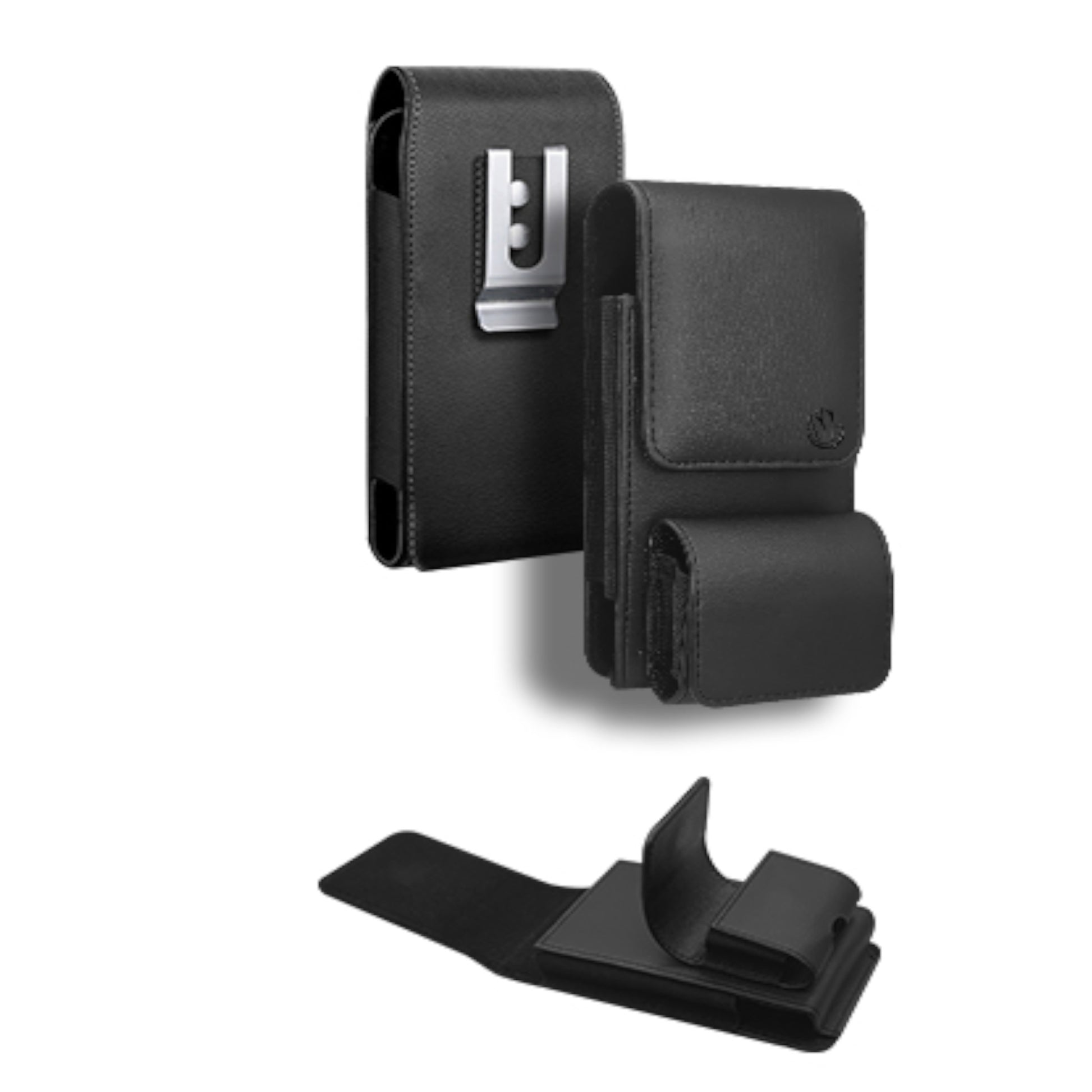 For Vertical Leather Universal Pouch 2in1 Dual Phone Holster with Airpods Holder, Metal Belt Clip Loop Holder Cover For Device Size 6.7" Case Cover Black