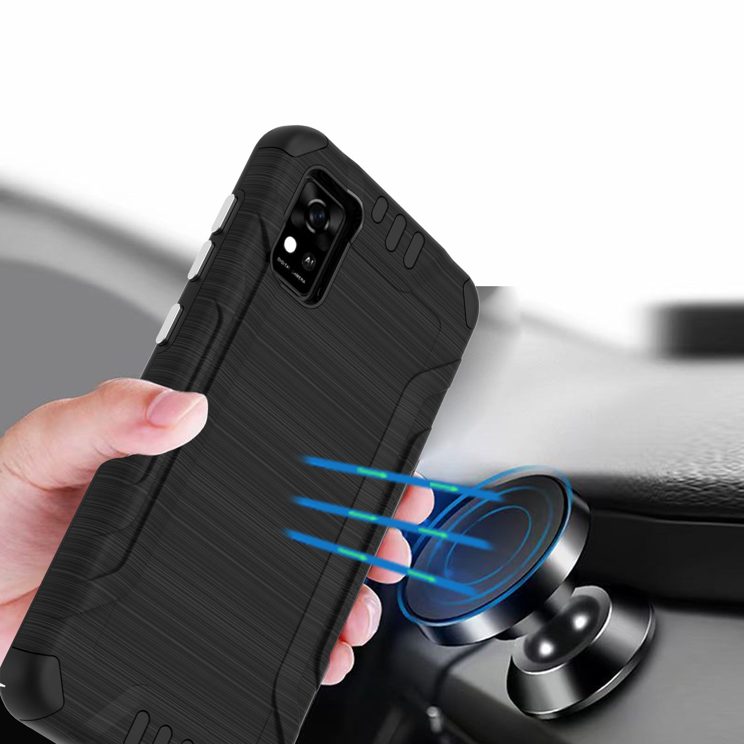 For ZTE Z589, Z5158 Hybrid Dual Layer Slim Defender Armor Tuff Metallic Brush Texture Finishing Shockproof Hard PC + Soft TPU Rubber Phone Case Cover