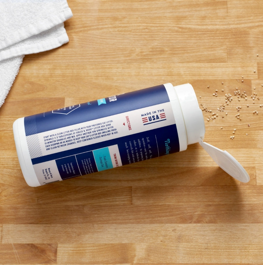 DirectionsStart with a clean litter box filled with your preferred cat litter. Sprinkle 2-3 tablespoons of Rocco & Roxie Litter Box Odor Eliminator granules and mix. Apply another few sprinkles after each scooping or as needed to keep your cats litter box smelling