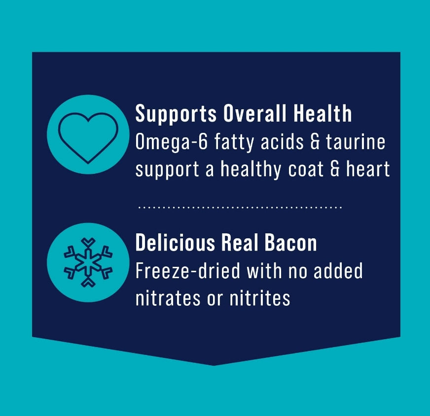 * Freeze-Dried Dog Meal Toppers Our unique recipes are made with irresistible, tasty bacon as the first ingredient and freeze-dried with no added nitrates or nitrites. Make mealtime special and add variety to everyday kibble for a taste dogs love.