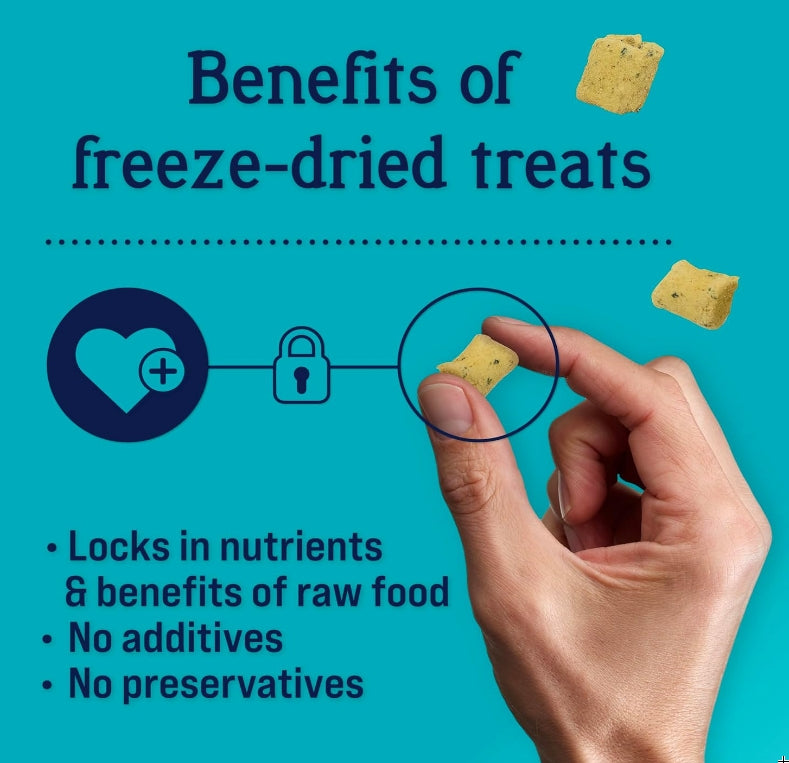 * A healthier option: Freeze-drying preserves the natural nutrients in the treats, making for lightweight, easily-stored treats