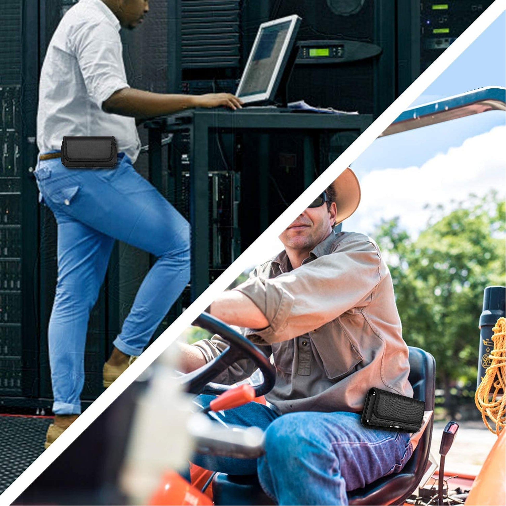 • Metal Belt Clip & 2 Belt Loops: The belt phone holder provides 2 ways to attach on your pants, you can either simply slide and clip it on the waistband of pants or use it with a belt for a more secure lock. Free your pocket and hands.