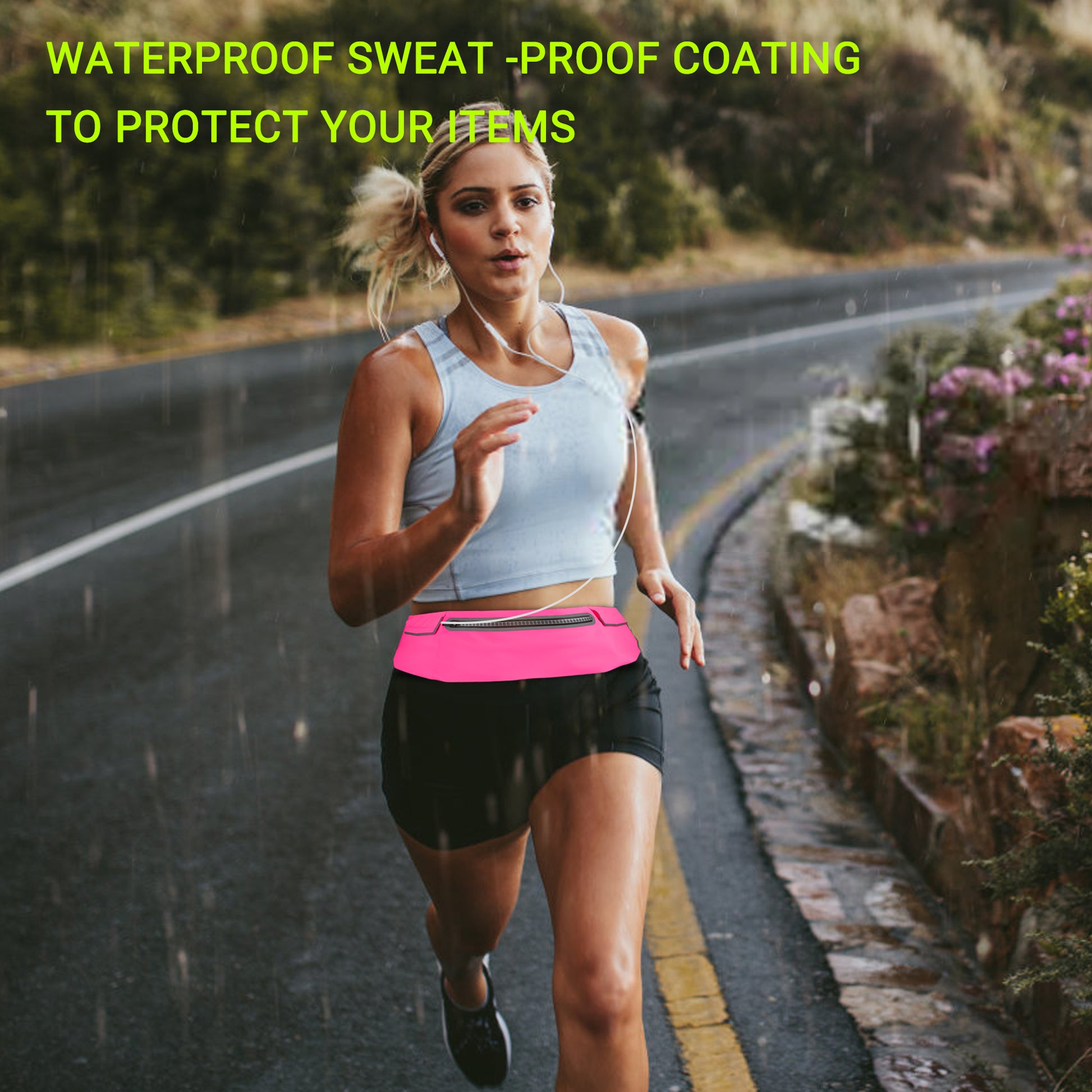 Pink Liquid Skin Super Slim Running Belt for Women and Men, Money Belt and Running Fanny Pack, Holder for Cell Phone, Money, and Keys - Pouch fits Most Phone and Waist Sizes [Glow in Dark]